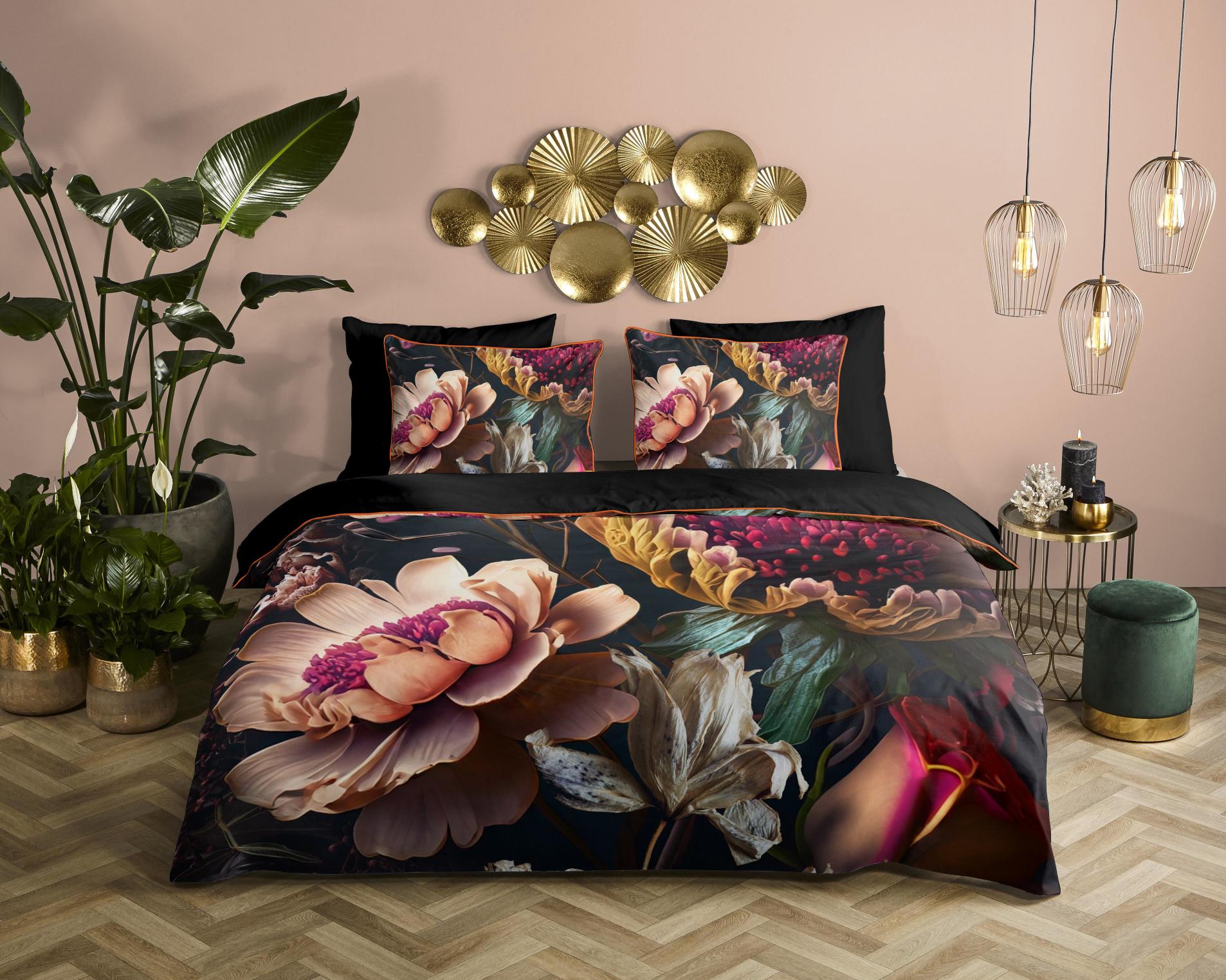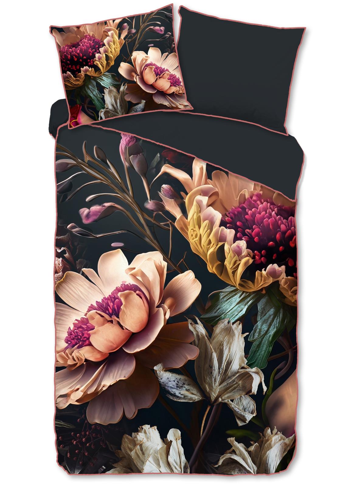 Satijnen dekbedovertrek Straizo van Descanso. Dit dekbedovertrek met Bloemen, in de kleur antraciet, is gemaakt van 100% katoen-satijn. Descanso dekbedovertrek is luxe, stijlvol en elegant. De achterkant heeft een bijpassende uni kleur. Het dekbedovertrek en de kussenslopen zijn afgewerkt met een luxe bies in een bijpassende kleur. Dat geeft een chique uitstraling aan je slaapkamer. Het dekbedovertrek van Descanso is gemaakt van 100% katoen-satijn. Satijn is een speciale weeftechniek die zorgt voor een mooie glans en een zachte, soepele stof. Het is ademend, vocht- en warmteregulerend, en dus heerlijk comfortabel. Oeko-Tex gecertificeerd: vrij van schadelijke stoffen. Wasbaar op max. 60°C en geschikt voor de wasdroger.