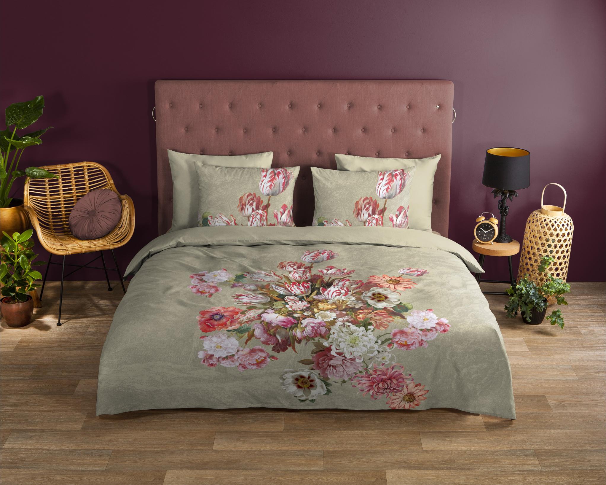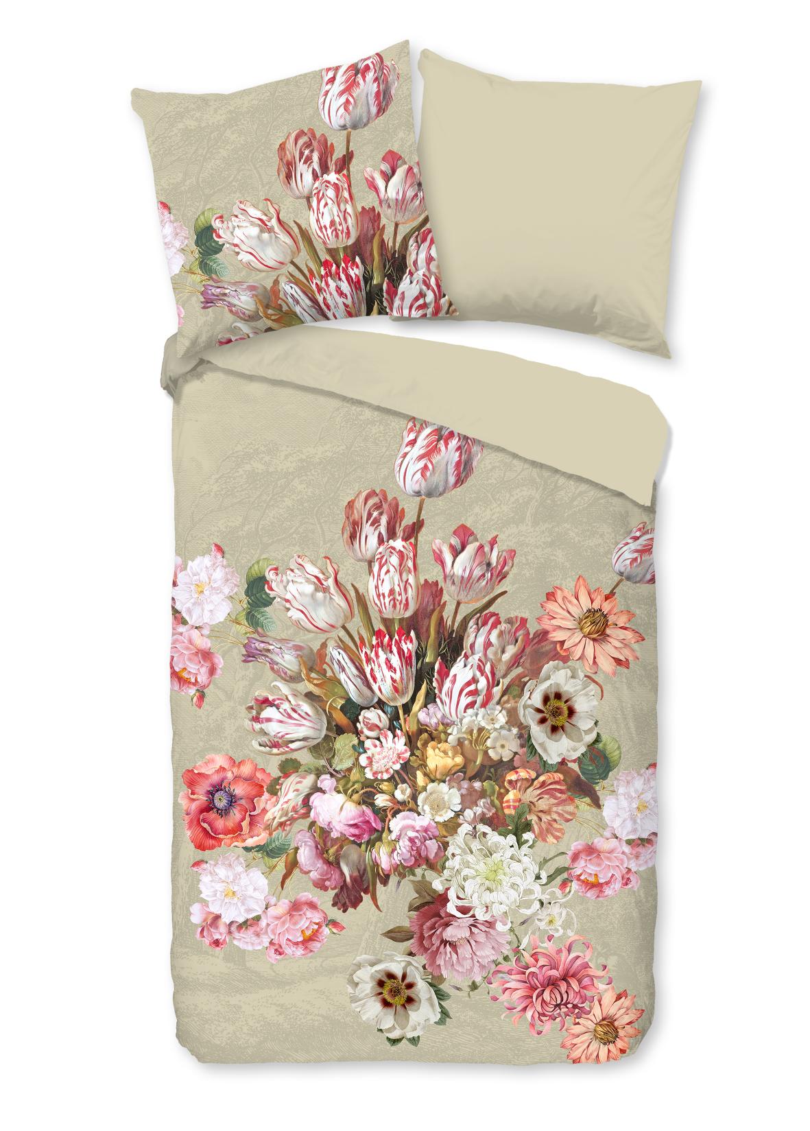 Housse de couette Miran de Good Morning avec des fleurs, en couleur sable. Elle est fabriquée à 100% en coton. La qualité est respirante, absorbante et se sent douce et souple. Cette belle housse de couette égaye chaque chambre et convient à toutes les saisons. La housse de couette en coton est délicieusement fraîche en été et procure de la chaleur en hiver.