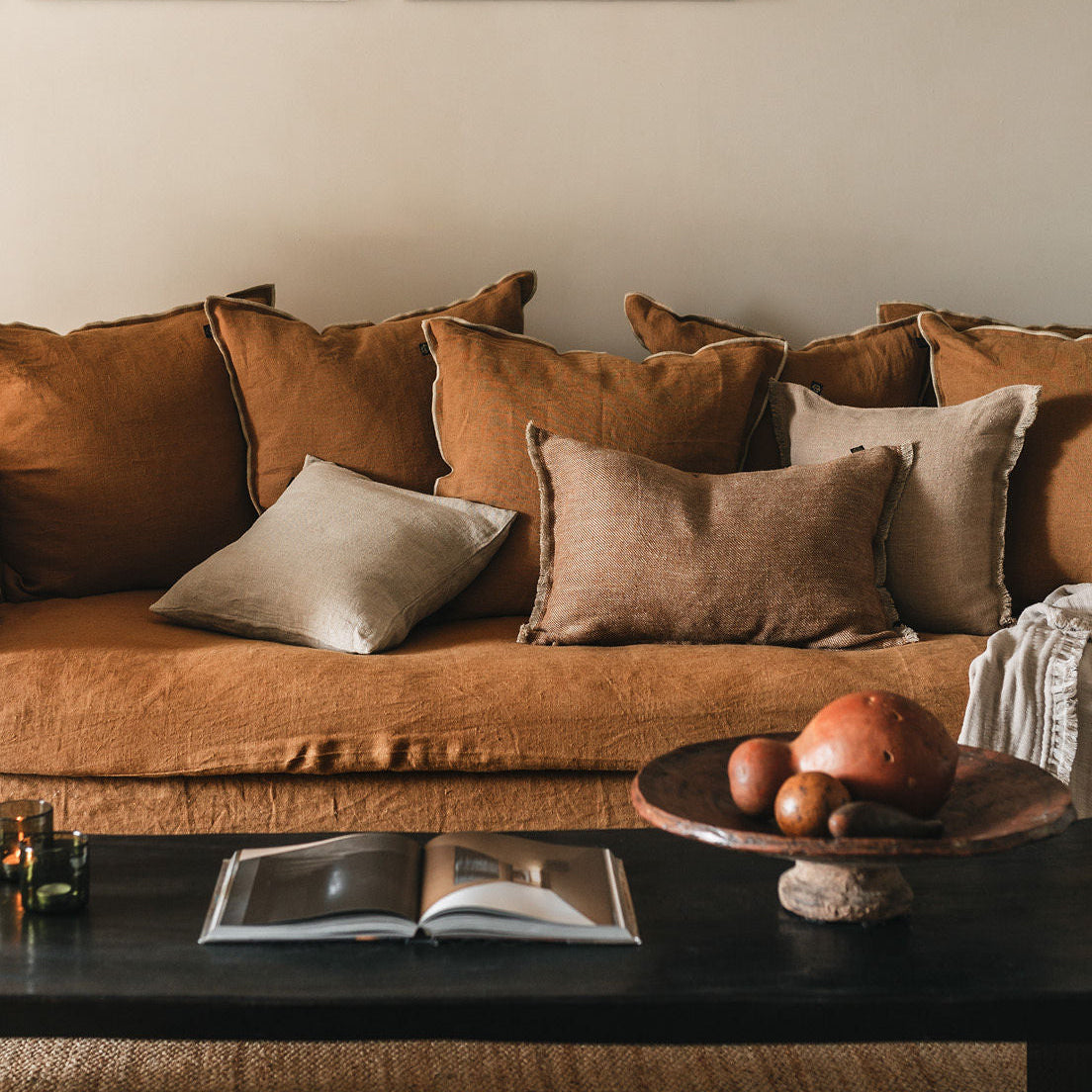La housse de coussin CUBA de Haomy est l'accessoire indispensable pour apporter une touche de confort naturel et de style authentique à votre intérieur. Sa matière en lin chiné, ses finitions frangées et sa palette de couleurs terreuses en font un allié pour vos moments de détente.