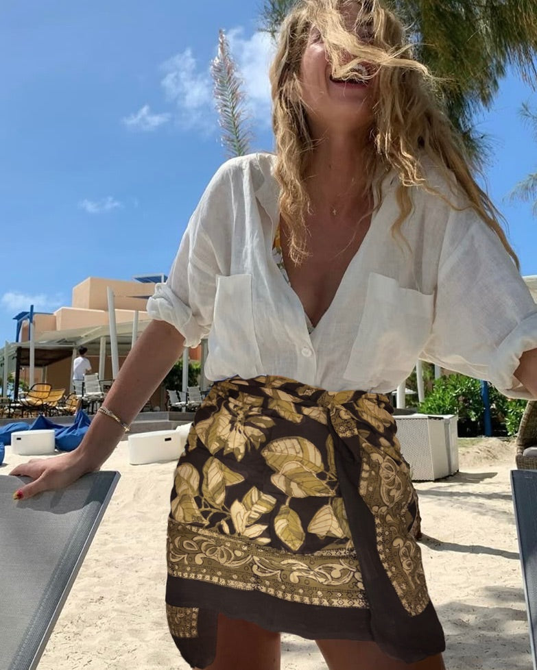 - Paréo en voile de coton imprimé Blockprint. Se porte en mini-jupe, jupe longue, foulard dans les cheveux ou serviette de plage… Maison Jaipur Paris.