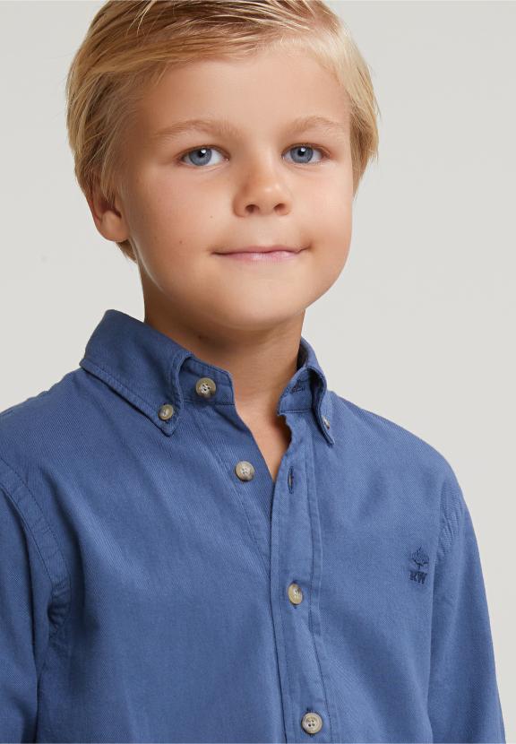 Custom Fit Cotton Shirt Engine Blue - Bleu