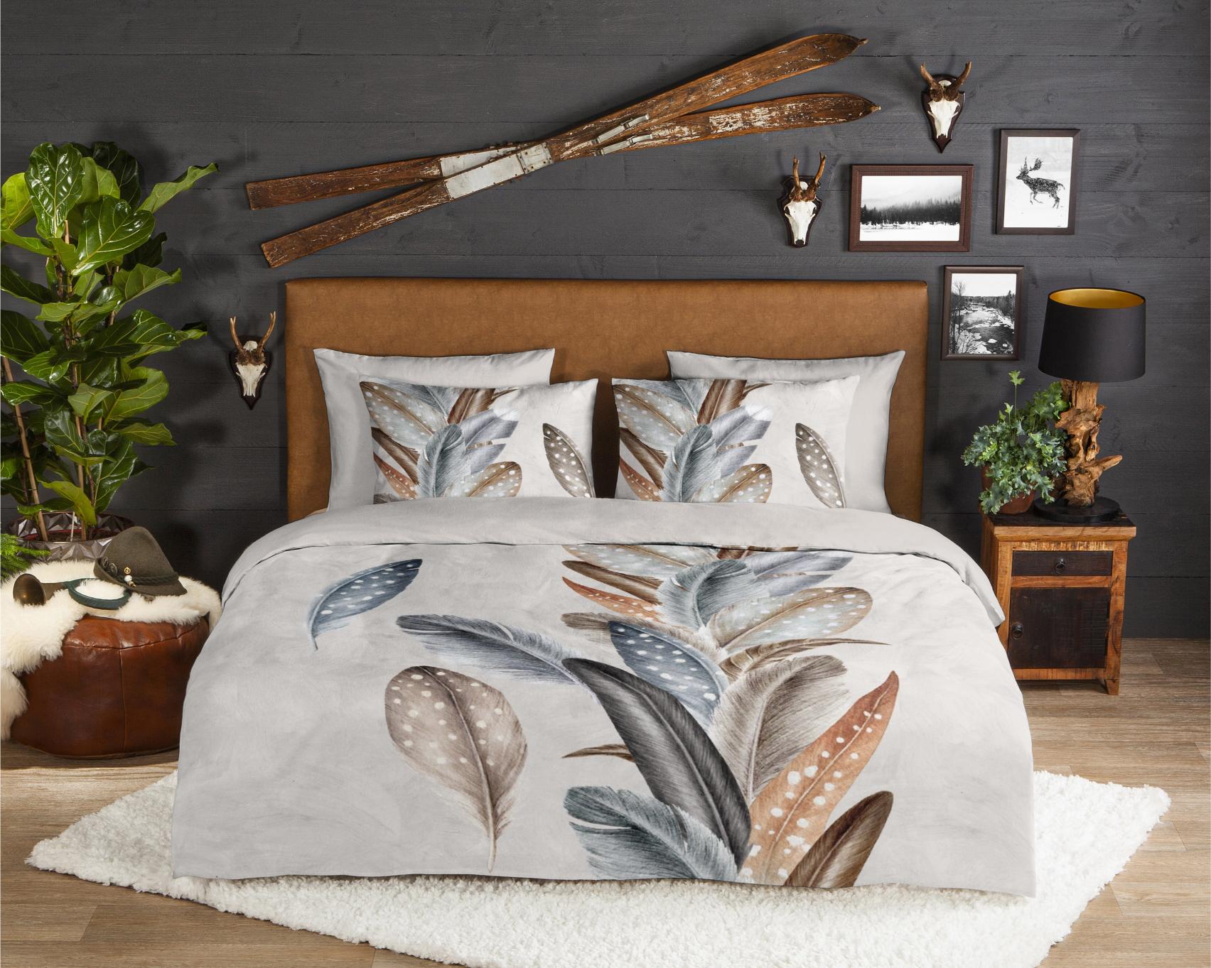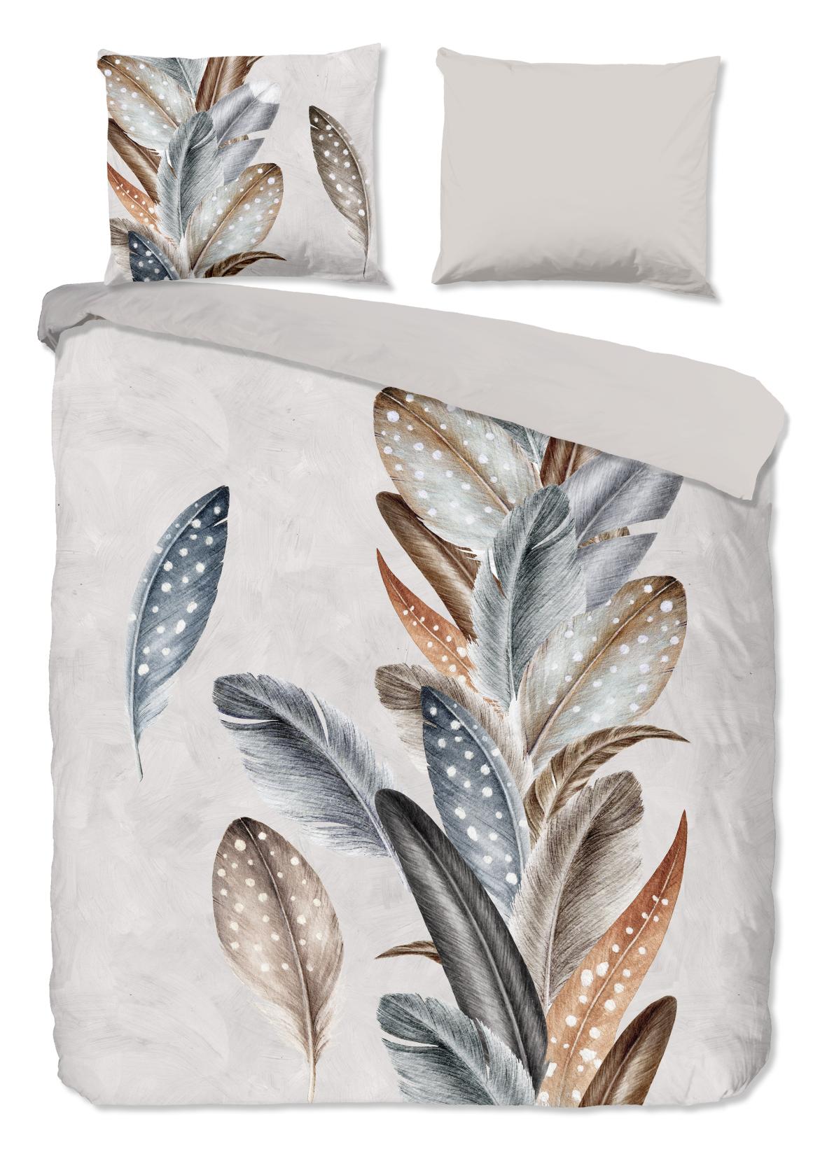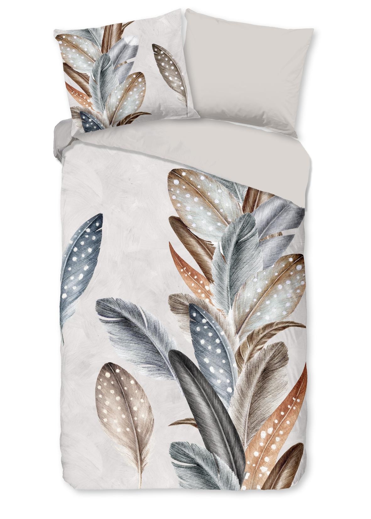 Housse de couette en flanelle Eina de Good Morning, couleur sable, avec un imprimé de plumes. La housse de couette est faite de 100% coton/flanelle légèrement brossé, créant une couche douce comme du velours qui est agréablement chaude - parfaite pour les nuits froides. Cet article est certifié Oeko-Tex (Oeko-Tex Standard 100) : exempt de substances nocives et respectueux de la peau. Lavable à max. 40°C et adapté au sèche-linge.