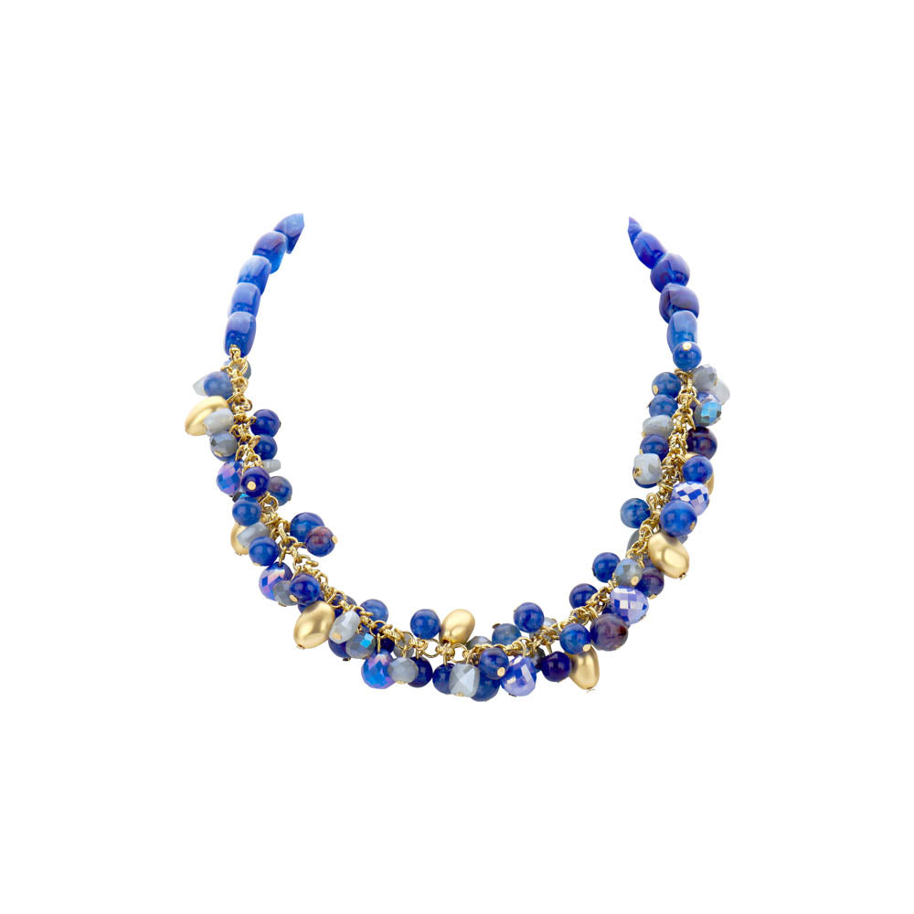 Collier de style bohème avec des perles bleues foncées en faisceau et des accents dorés