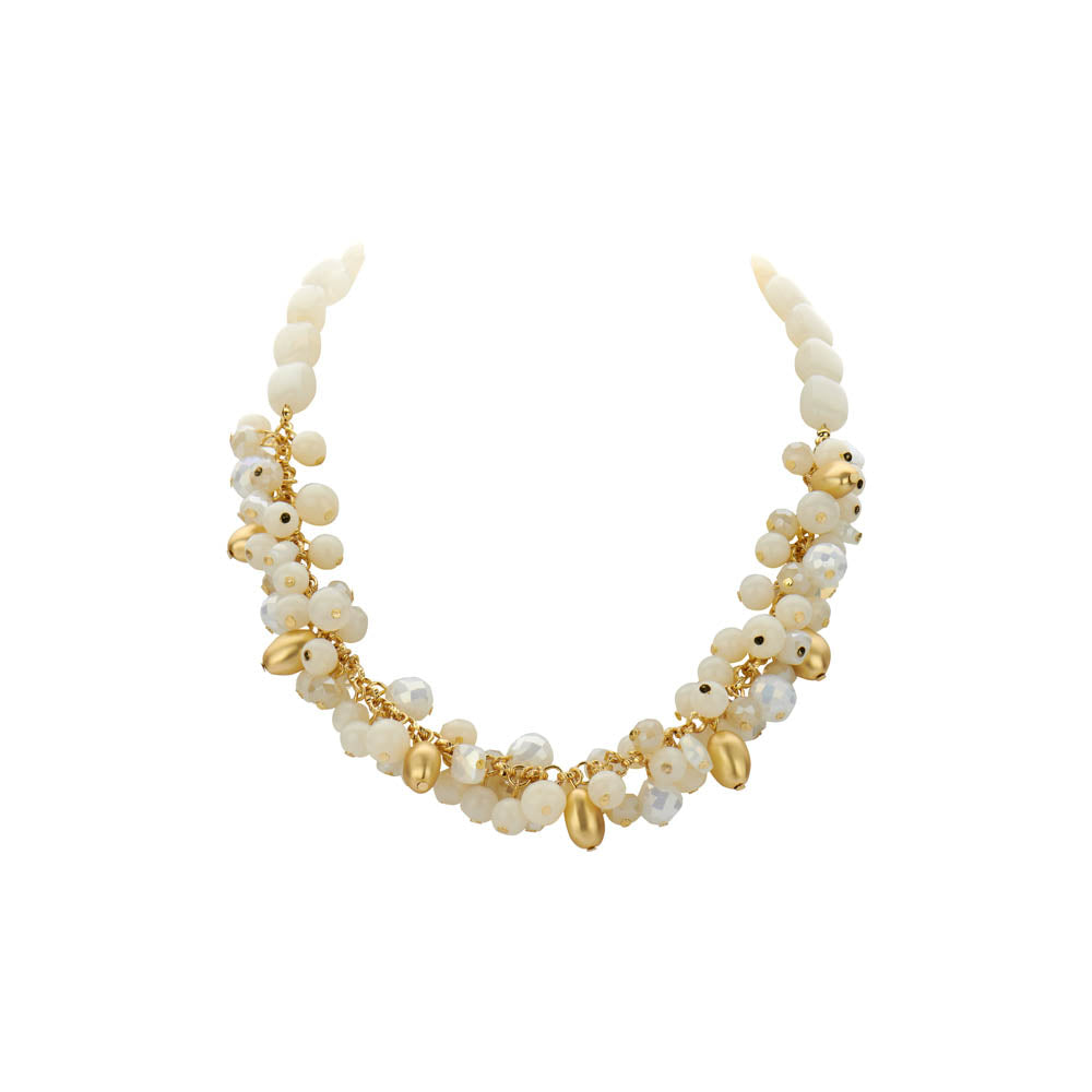 Collier de style bohème avec des perles écrues en faisceau et des accents dorés