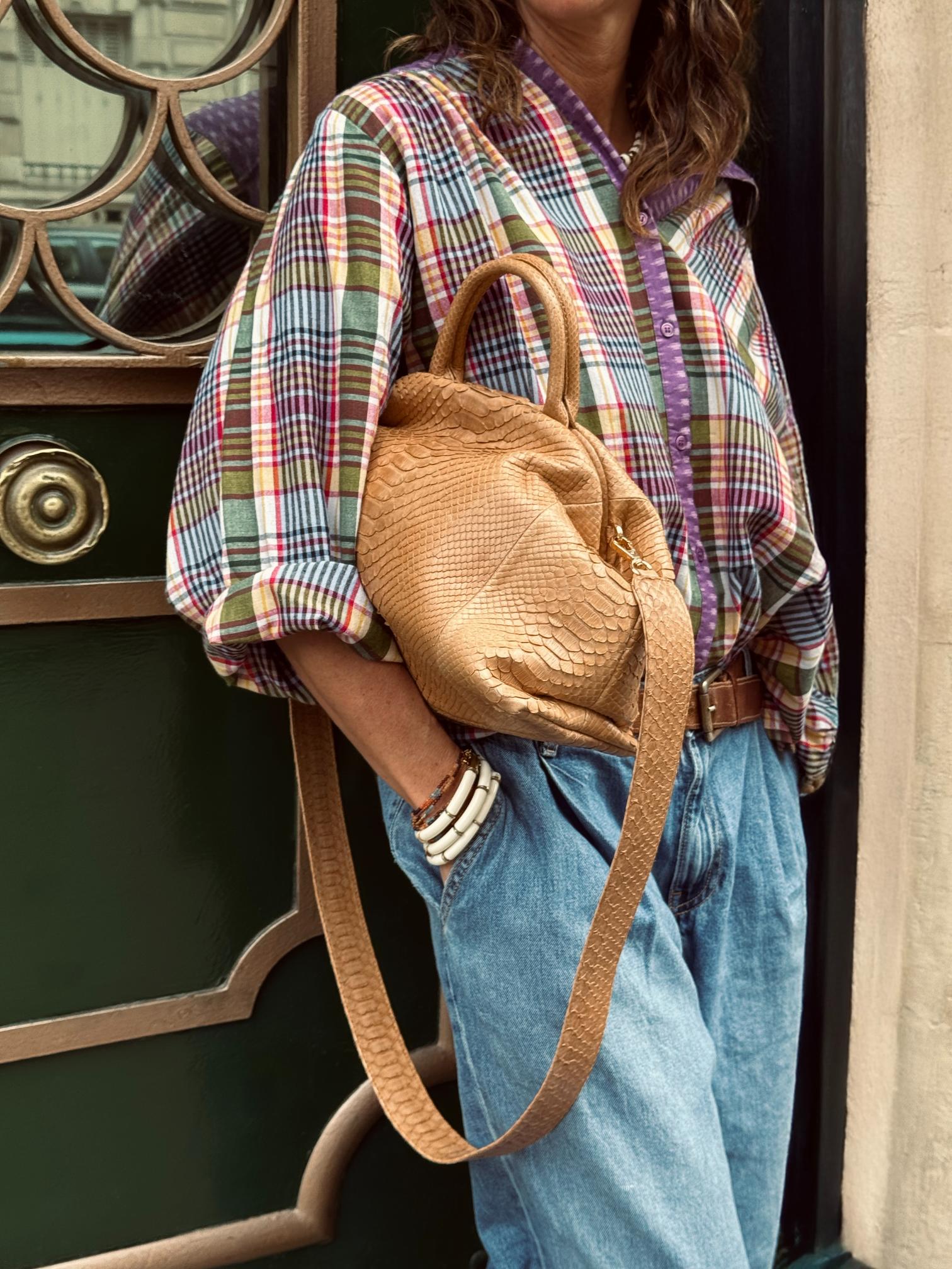 Bandoulière amovible en python. Dimensions : 35 x 22 cm