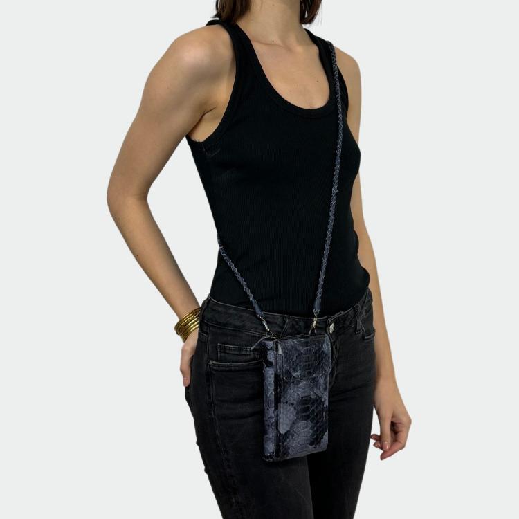 Pochette en python, avec double compartiment : compartiment portefeuille et