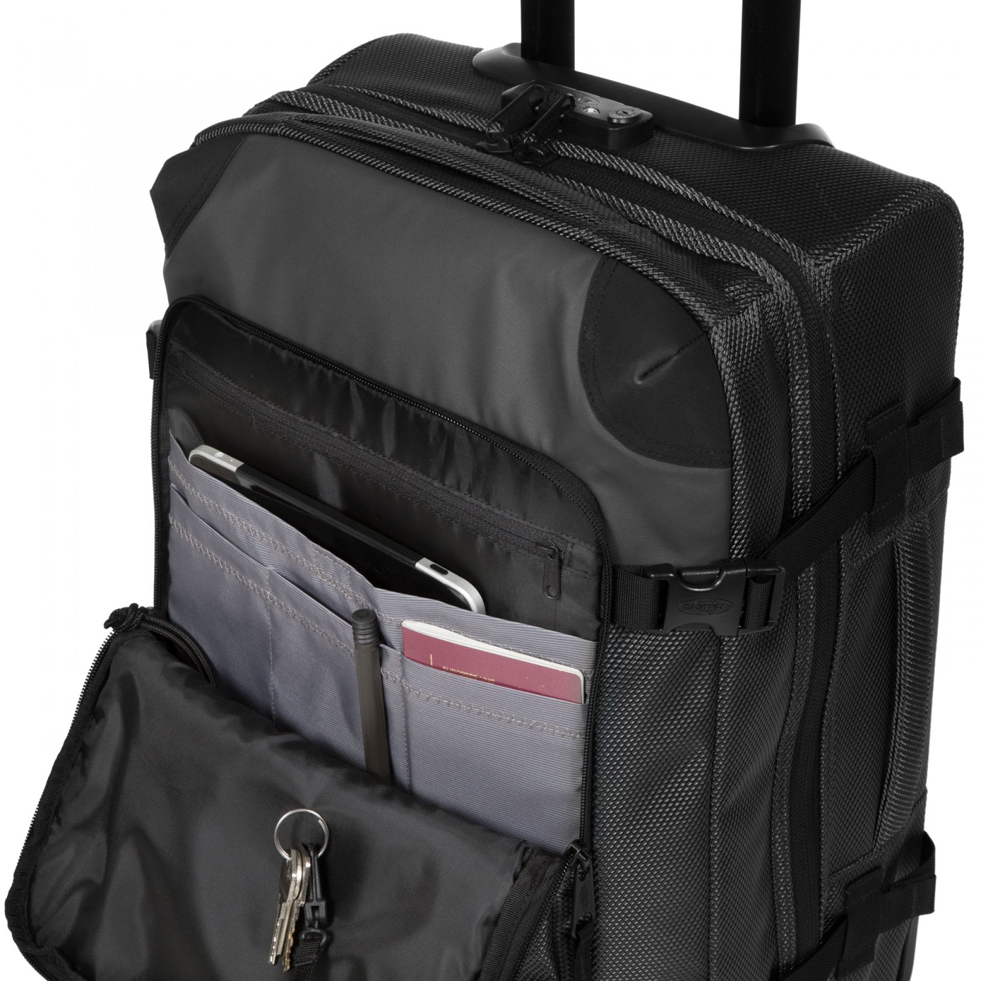 Un bagage cabine à roulettes dans un tissu CNNCT Coat : conçu pour vous accompagner où que vous alliez, et se range facilement à plat