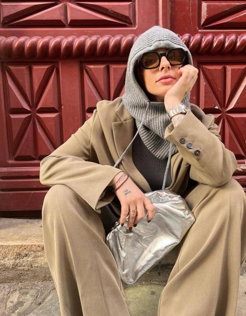 Zachte leren tas, met katoenen voering en magnetische sluiting. Enkel compartiment met klein zakje. Metalen afwerkingen. Afneembare leren schouderriem