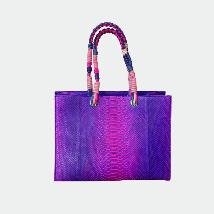 Python tas, met katoenen voering en gevlochten handvatten.