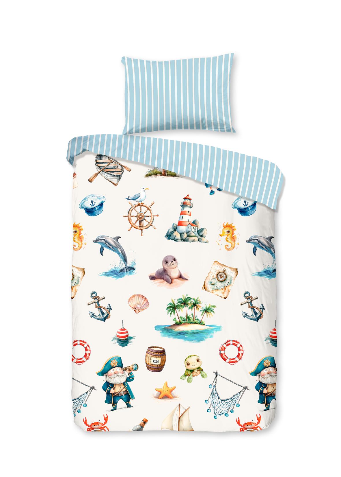 Kinderdekbedovertrek Capi van Good Morning in de kleur blauw, met een print van maritieme / zeedieren. Het dekbedovertrek is gemaakt van 100% katoen. Deze kwaliteit is ademend, vochtabsorberend en voelt zacht en soepel aan. Dit leuke kinderdekbedovertrek is een leuke toevoeging aan iedere kinderkamer. Het kinderdekbedovertrek is geschikt voor ieder jaargetijde. Het katoenen 100% katoen is heerlijk koel in de zomer en geeft warmte in de winter. Dit item is Oeko-Tex gecertificeerd (Oeko-Tex Standard 100): vrij van schadelijke stoffen en huidvriendelijk. Wasbaar op max. 40°C en geschikt voor de wasdroger.