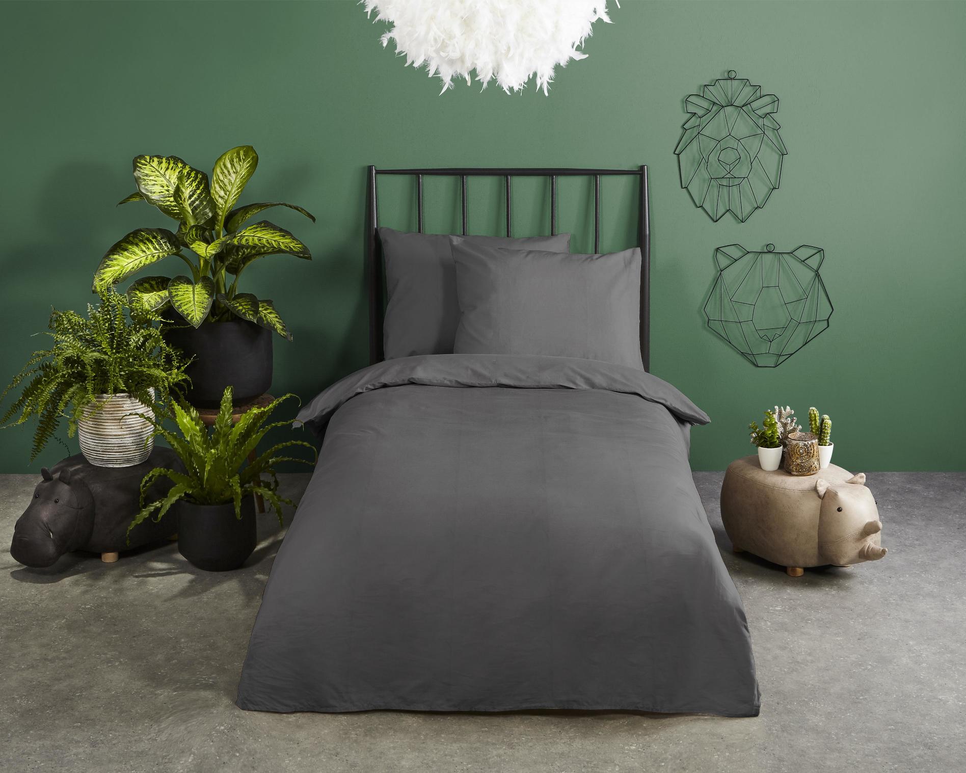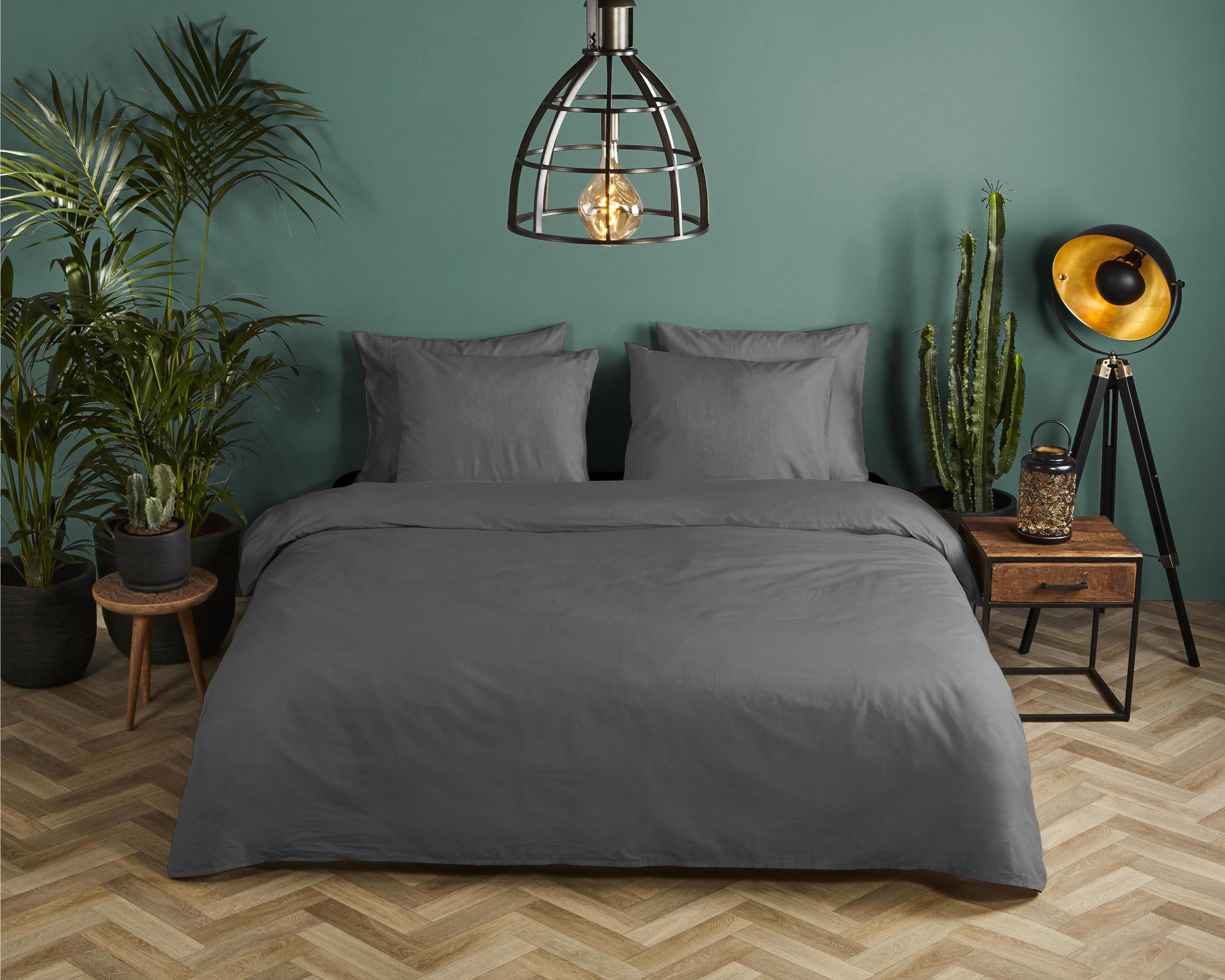 Satijnen dekbedovertrek uni van HIP. Dit luxe dekbedovertrek met effen kleur, in de kleur antraciet, is een dekbedovertrek dat opvalt. Een HIP dekbedovertrek is kleurrijk en uniek! Aan de achterkant van het dekbedovertrek zit altijd een leuke, bijpassende print. Een dekbedovertrek van HIP fleurt iedere slaapkamer op!