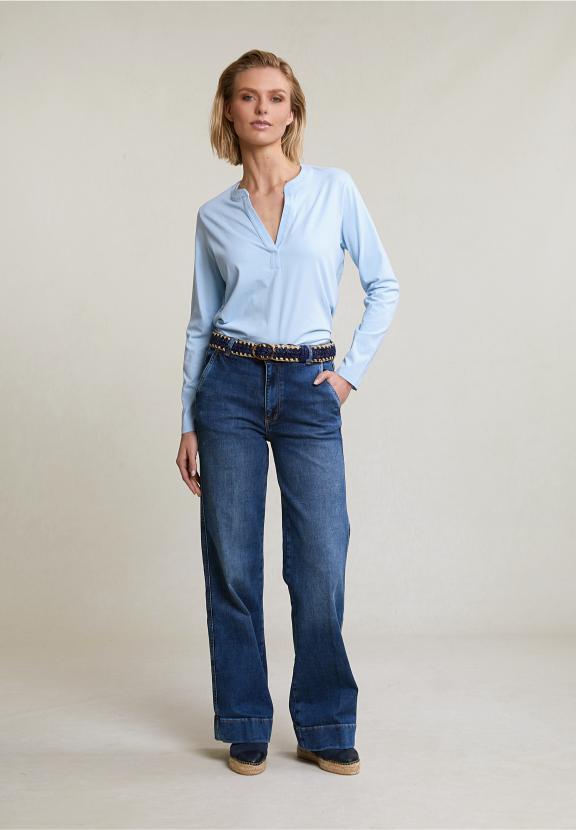 Light Blue V-Neck T-Shirt Long Sleeves - Blauw