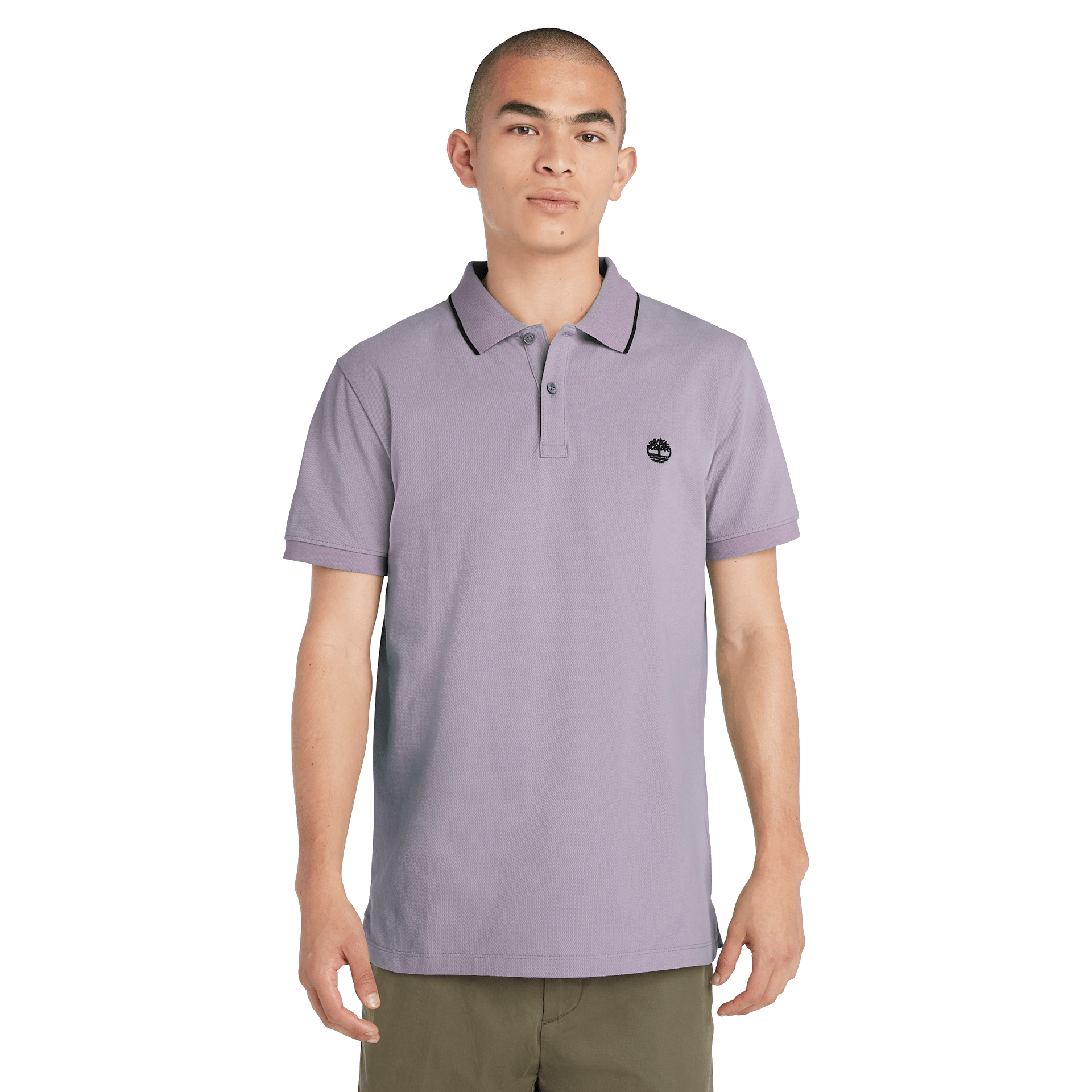 Millers River Printed Neck Short Sleeve Polo Purple Ash