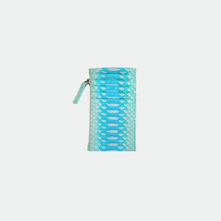 Kaartenhouder in python. Vijf vakken voor kaartenmet ritsvak.Metalen ritssluiting.Afmetingen: 8 x 14 cm