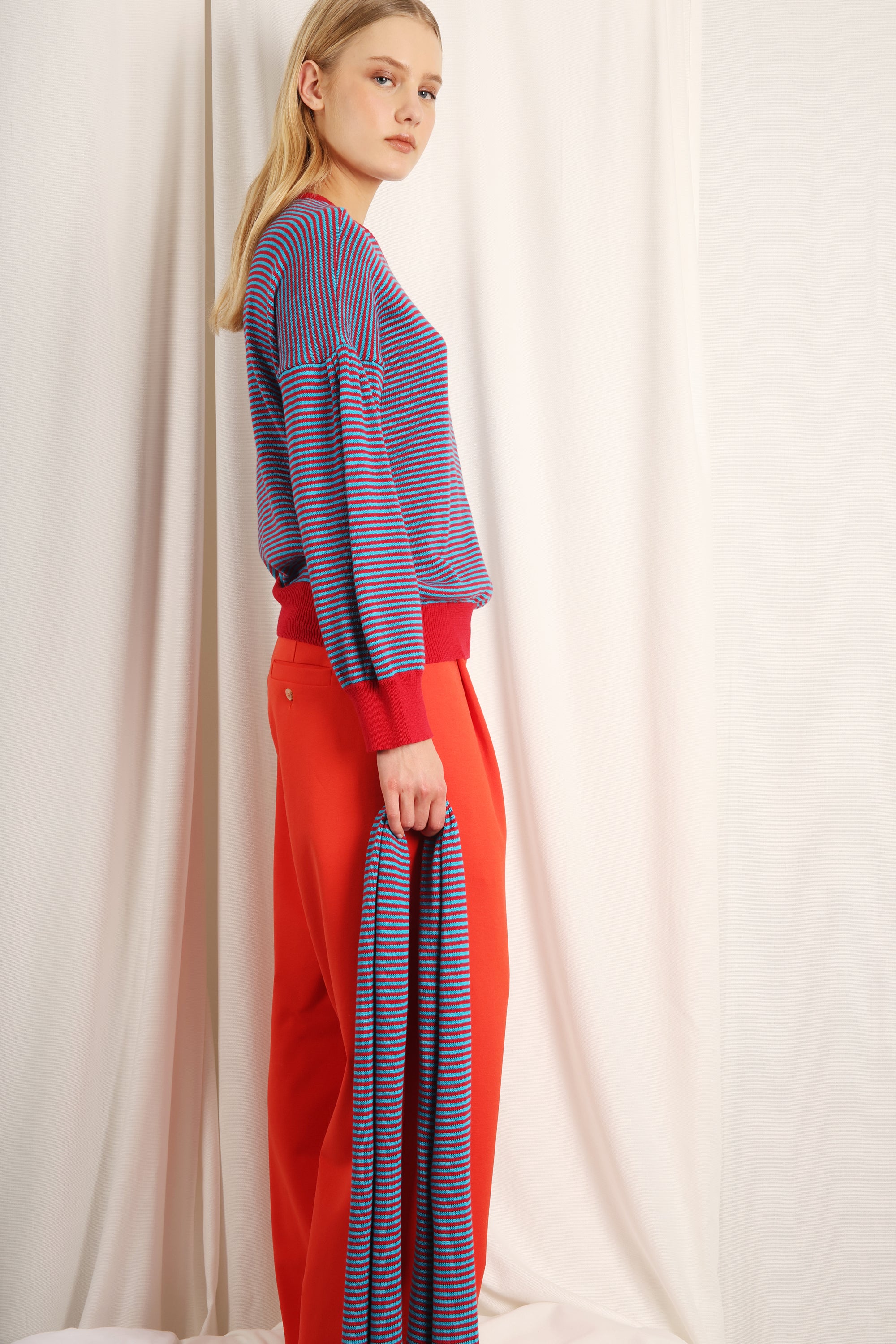 pull met volume mouwen gestreept